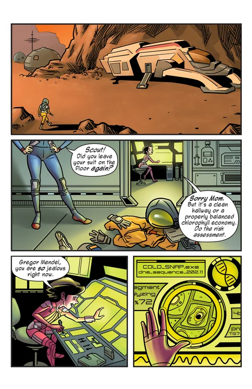 This story takes place before the events of the main book. It is set on Saturn's moon Titan, during the successful chapter of The Beagle II's expedition. Each page debuts on my Patreon, and will then later be shared here.